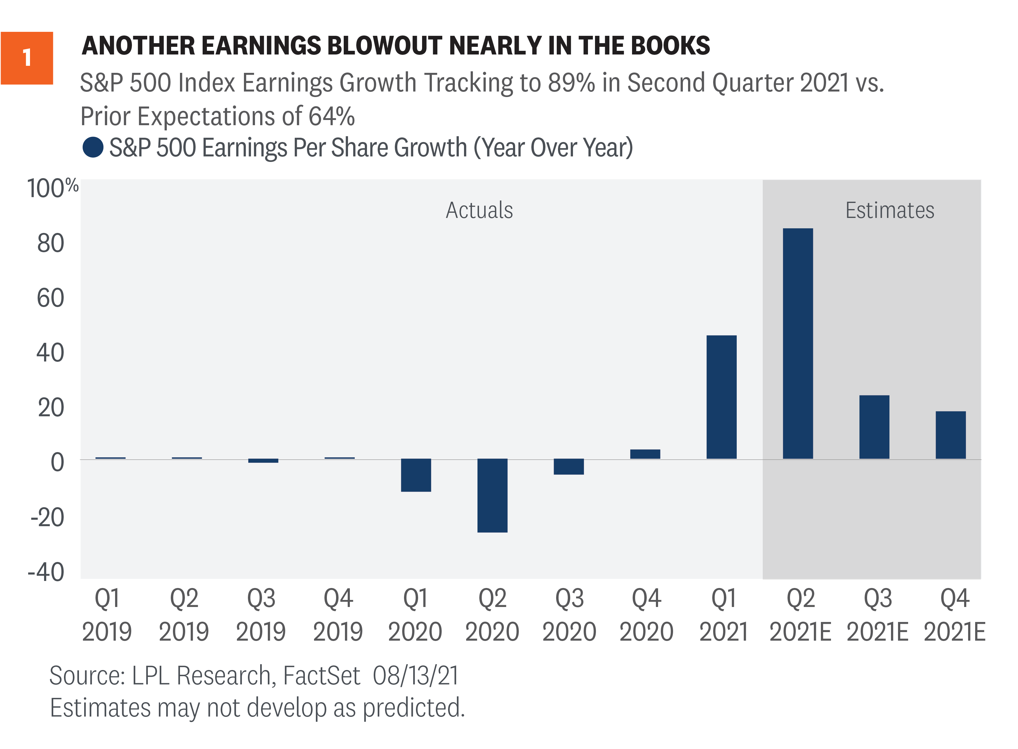In our earnings preview commentary in mid-July, we wrote that we expected another quarter of solid upside surprises. Huge earnings growth rates were never in question, considering that so much of the U.S. economy was shut down during the year-ago quarter. But strong second-quarter economic data and rising earnings estimates pointed to faster earnings growth than the consensus estimate implied on July 1.