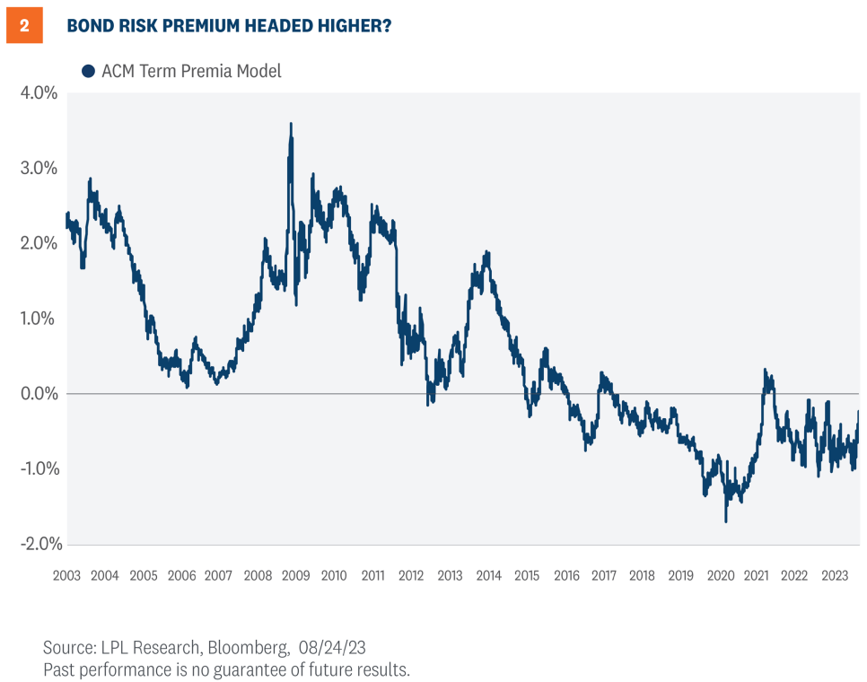 For years, economists have said the neutral rate is close to 0.5% or 2.5% after adjusting for inflation. Now, however, there are some central bank officials and economists who estimate the neutral rate to be higher, perhaps as high as 1.5% (or 3.5% adjusted for inflation). If the neutral rate is indeed higher, then that has implications for the economy as well as the bond market. Historically, when the Fed took the fed funds rate into restrictive territory, things broke (as described above). However, despite over 5% of rate hikes to seemingly very restrictive territory, things aren’t breaking, which may confirm the neutral rate is indeed higher than it has been in the recent history.